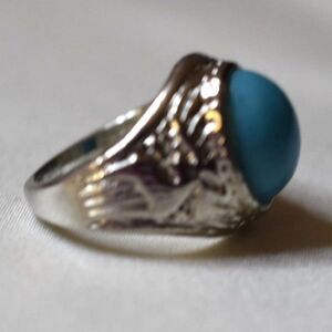 Vivid Blue Oval Stone Inlay Graphic Etched Deer Silver Tone Metal Size 13.5 Ring