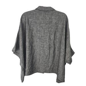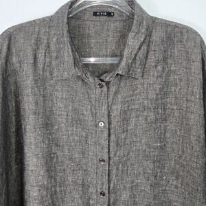 Vivid Button Front Top Short Sleeve 100% Linen Relaxed Boxy Fit Woven Gray 2X