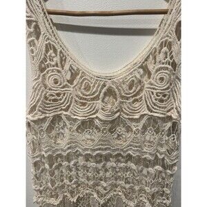 Vivid Collection Cream Boho Crochet Tank Top 100% Cotton Sz Large
