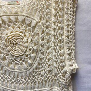 Vivid Collection Crochet Macrame Top Knit Cutout in Cream