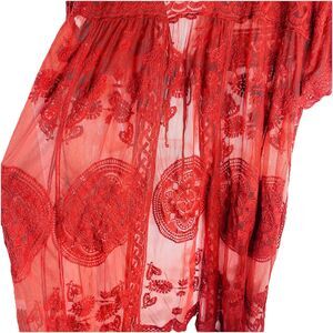 Vivid Collection Open Cardigan SZ M Red Crochet Lace Short Sleeve Top Boho Fall