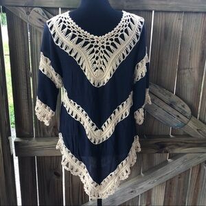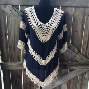 Vivid Collection of NY Navy & Cream Crochet Boho Top