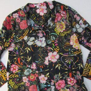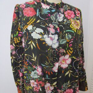 Vivid Floral Black Top Blouse Poly Keystone Bohemian