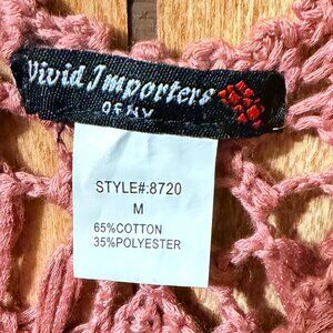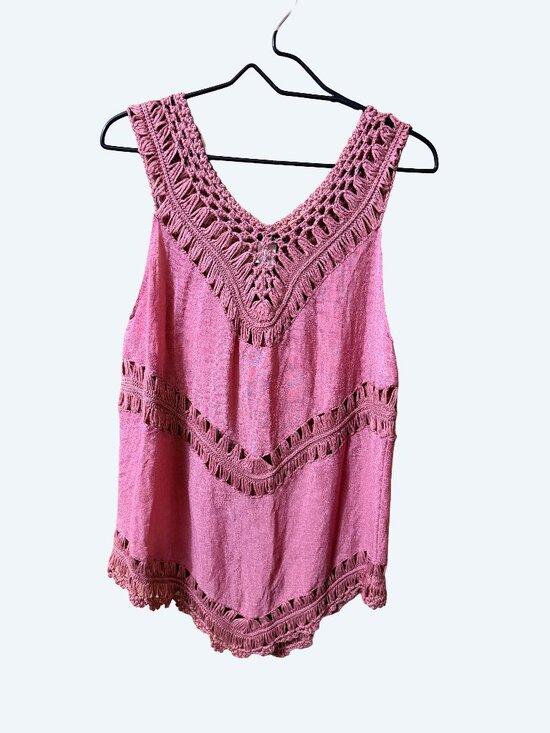 Vivid Importers ORLY Boho Macrame Fringe Tank Top Dusty Rose Pink Medium Cottagecore