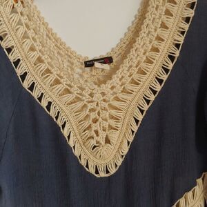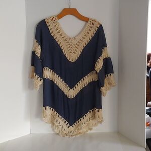 Vivid Importers of NY Women's Open Knit Boho Tunic Blue and Cream M