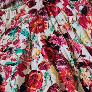 Vivid Imports Size Large Racer Back Floral Tank With White Knit Fringe
