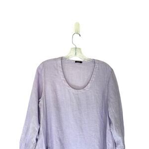 Vivid Purple Lagenlook Coastal Grandma Chore Long Sleeve Linen Tunic Size Medium