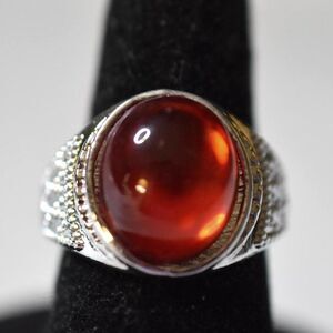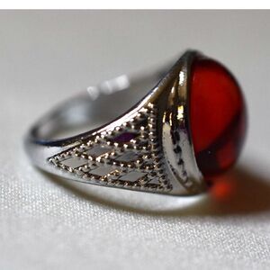 Vivid Red Oval Stone Inlay Diamond Design Etched Band Sizes 4.5,5.5 & 6.5 Rings NWOT