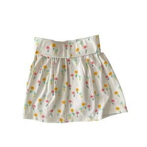 Simple stretch cotton skirt with lots of twirl! Colorful flowers all over with a comfortable elasticized waist band.