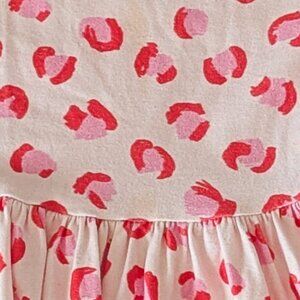 Vivie & Ash Pink Leopard Twirly Dress PLAY size 7. Play for staining on torso of dress and wear as shown. I have some wild kids and this dress had some adventures. I did my best to show the stains on the dress, the last image is the inside of the dress so you can see the stains better. Still plenty of life in the dress!