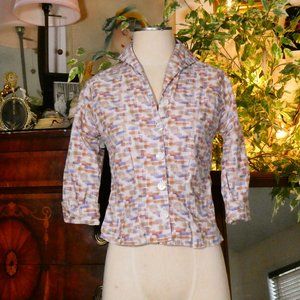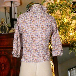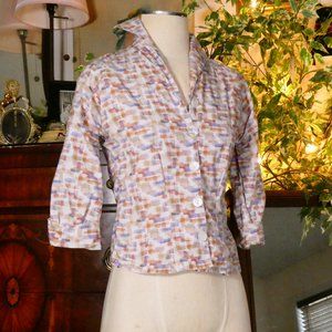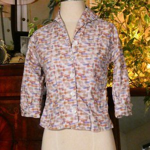 Vivien of Holloway 1950's Style Brown Watercolor Print Raglan Blouse Sz 10