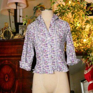 Vivien of Holloway 1950's Style Purple Watercolor Print Raglan Top Sz 10