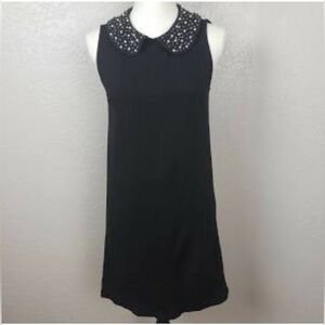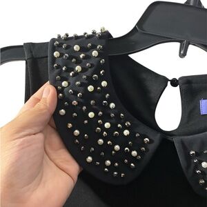 Vivienne Tam Black Dress W/Pearl and Bead Embellishments Mary Jane Collar M