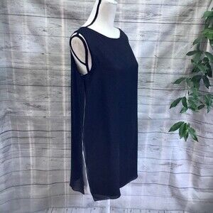 Boatneck Sleeveless shift dress with sheer overlay. This dress is minimalist but will have movement in the breeze. Pics don’t do it justice, it’s gorgeous and effortlessly chic.