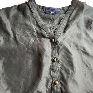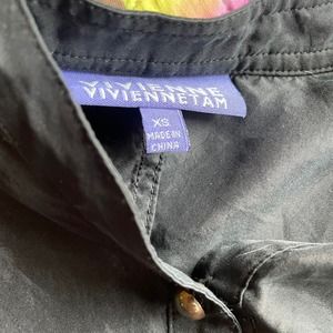 Vivienne Tam Black Silk Pearl Button Short Sleeve Dress Top Puff Sleeves Size XS
