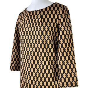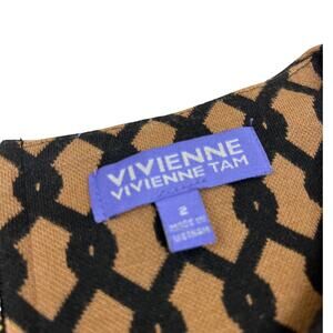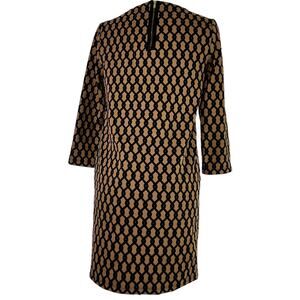 Vivienne Tam Geometric Chain Print Shift Knit Dress Black Brown Knee Length 2 XS