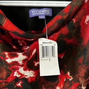 Vivienne Tam NWT Size 8 Red Black Draped Cowl Neck Long Sleeve Top Abstract Art