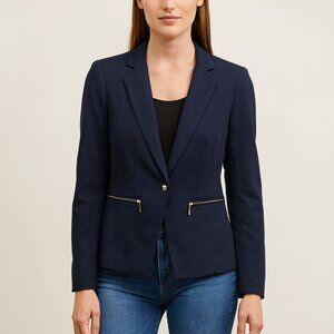 Vivienne Tam Navy Blazer Jacket Women’s Size 6 Gold Zip Pockets Office Career