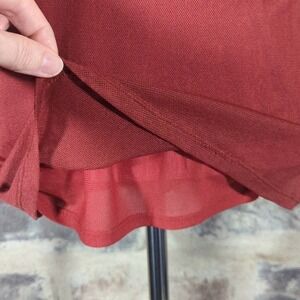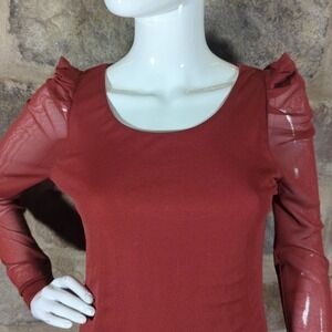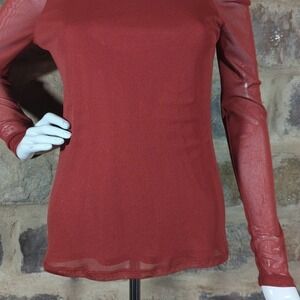 Vivienne Tam Petite Red Mesh Sheer Long Sleeve Top Size PM Ruffle Shoulder
