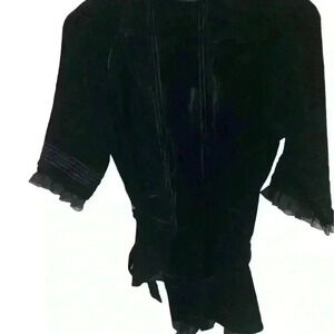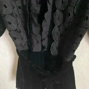 Vivienne Tam Regencycore Silk Blend Black Velvet Appliqué Tie Waist Top Size S