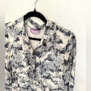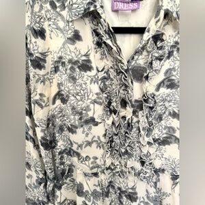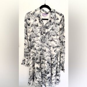 Vivienne Tam Silk Vintage Pleated Ruffle Floral Shirt Dress Preppy. Has some light discoloring under arms and a couple faint marks on sleeve both shown in last two photos. No size tag but fits like a medium, check measurements