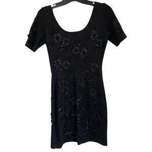 Vivienne Tam VTG 90s Holiday Black Beaded Knit Bodycon Dress