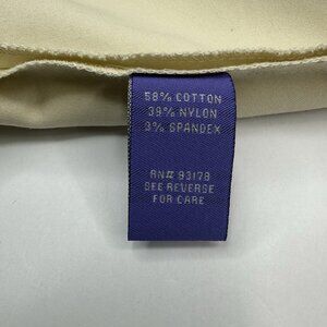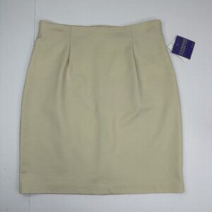 Vivienne Tam women's size 6 petite skirt, it is the Butterfly Beige color, pencil style, above the knee, stretchy, back button and zip closure. Materials 58% cotton, 39% nylon, 3% spandex. Care dry clean only. RN# 83178. Condition is new with tags as shown in pictures. Please preview the measurements to ensure fit. Size 6 dress form used in photos.