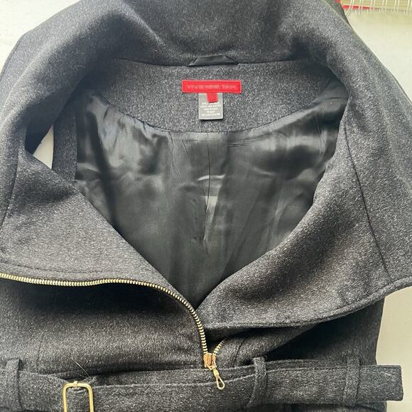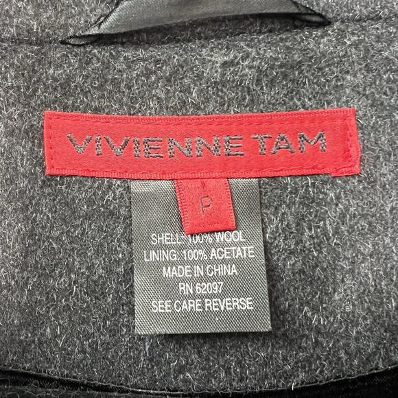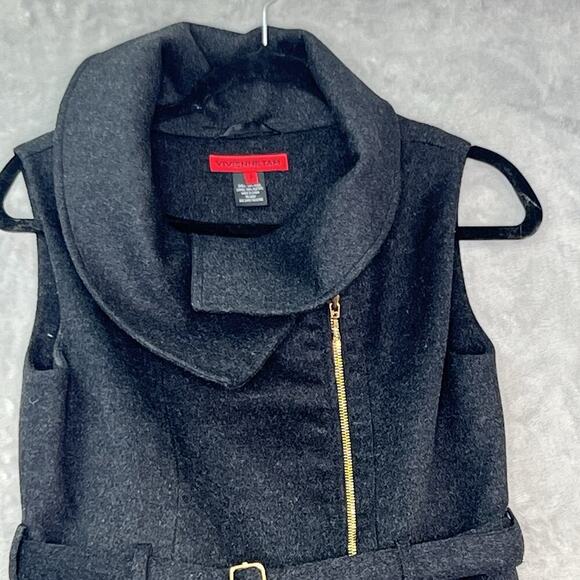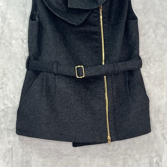 Vivienne Tam Womens S Wool Vest Jacket Collared Belted Charcoal Pockets Peplum