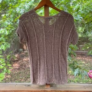 Vivienne Tam Women's Tan Open Knit Short Sleeve Sweater Size S