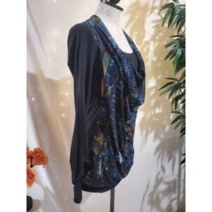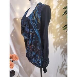Vivienne Vivienne Tam Mesh Draped Neck Abstract Long Sleeve Top Womens Size XS Y2K