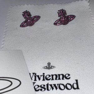 Vivienne Westwood 3D silver tone Purple Orb drop Earrings New with Box