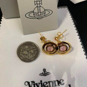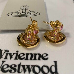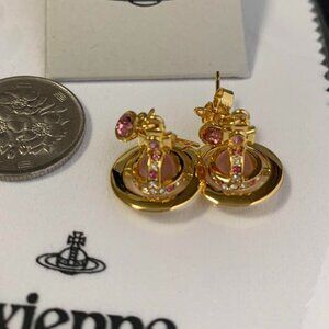 Vivienne Westwood Drop Orb Earrings Gold Pink Tiny Orb Stone Outlet authentic