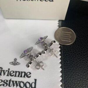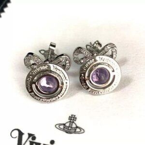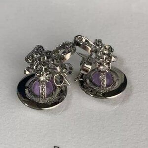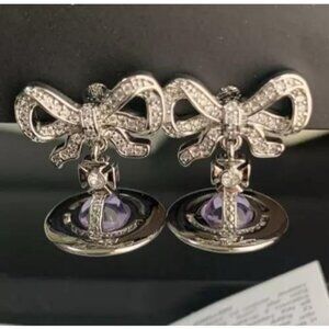 Vivienne Westwood Drop Ribbon Orb Earrings Silver Purple In Box/Drawstring