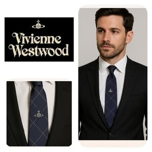 Vivienne Westwood Necktie Navy Blue skull Silk100% Made In Italy Tip