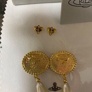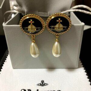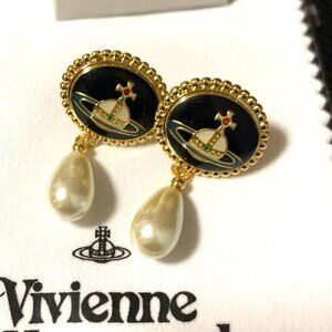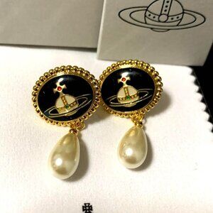 Vivienne Westwood Orb Enamel Button Pearl Earrings Gold Black Outlet authentic