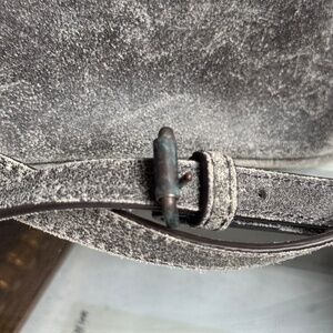 Medium gray calf leather distressed finish signature Orb plaque detail rear zip-fastening pocket adjustable detachable shoulder strap main compartment internal patch pockets internal logo tag striped lining antique-effect hardware top zip fastening