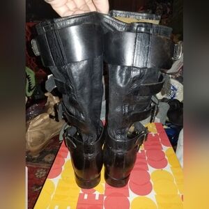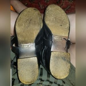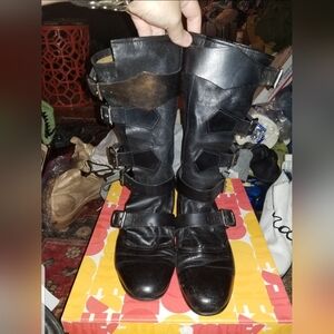 vintage Vivienne Westwood pirate boots. Custom dye job. All black leather. Straps. Buckles. Wood heel. Made in England. Includes dust bag.