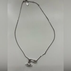 Elegant Vivienne Westwood necklace. Features iconic orb and safety pin design. Adorned with sparkling crystals. Perfect for any occasion. But no bag or box included, amazing condition otherwise!