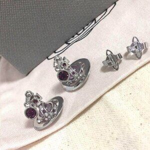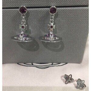Vivienne Westwood Tiny Orb Earrings Purple Stone Silver Jewelry with drawstring