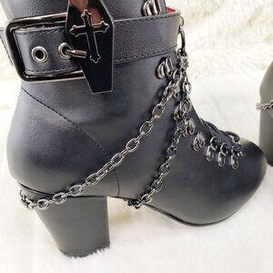 Vivika Goth Granny Ankle Boots Coffin Straps & Chain