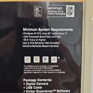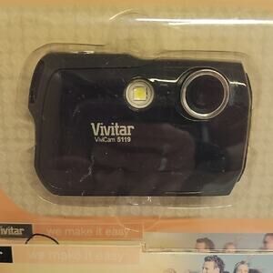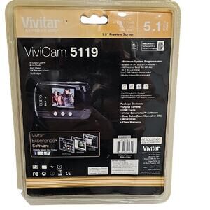 Vivitar digital camera with 5.1 MP resolution. Features 4x digital zoom and anti-shake technology. Compact black design. Never opened so not tested. This camera comes with USB cable, Vivitar Experience Software, Easy Guide (on CD), and a wrist strap. It features Auto Flash, Anti-Shake, 1.8" Preview Screen and PicBridge. It has 2592 x 1944 (5.1MP) resolution. Grab now as a gift for your children of for yourself. Memory card not included.