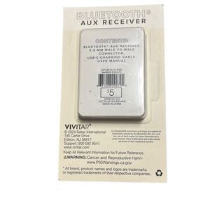 Vivitar Bluetooth AUX Receiver 3.5mm Male to Male USB-C Charge Purple New