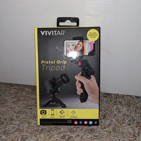 Includes smartphone holder. Camera mount. Phone mount. Adjustable mount. Compact & light weight.