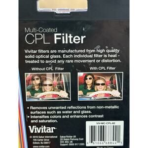 The Vivitar Series 1 82mm CPL Filter is a high-quality circular polarizer filter designed for cameras and lenses. With a filter size of 82mm, this multi-coated filter helps reduce glare and reflections, enhancing the colors and contrast in your images. The Vivitar brand is known for producing reliable and affordable optics, making this filter a great choice for photographers looking to improve the quality of their photos. New in Box
