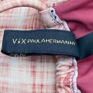 Vix Bia Tube Bikini Top Pink Plaid Print Halter Tie Adjustable Size Small