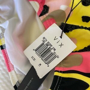 Vix bikini bottom with bold patterns. Features pink, yellow, and black accents.