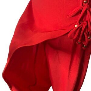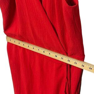 Vix Paula Hermanny Cyndi Wrap Midi Dress Women’s Size Large Red Crinkled Voile
