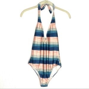 Vix Paula Hermanny One-Piece Mani Ice Striped Halter Swimsuit