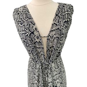 Vix Paula Hermanny Snakeskin Print Maxi Cover Up Size XS Plunge Neckline Slits