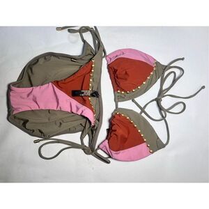 Vix Women's Block Tri-Block Tie Side Bikini Two Piece Swimwear Multicolor Large
